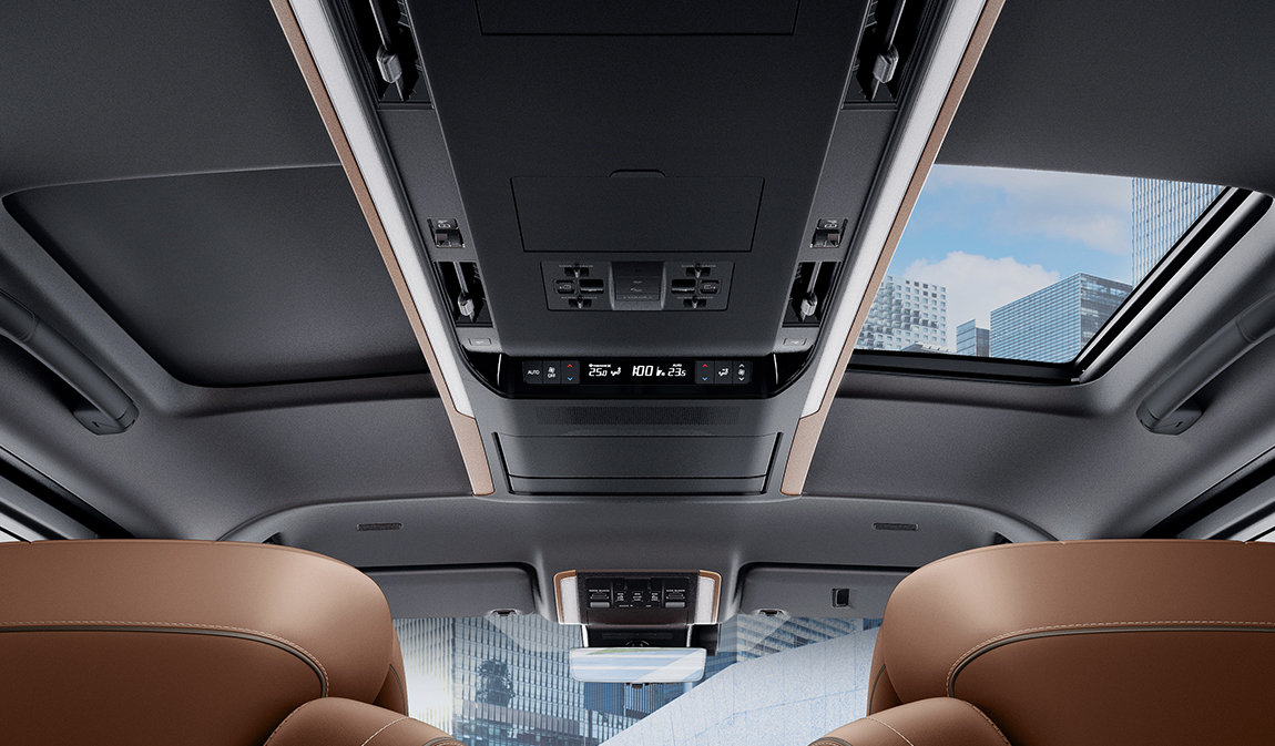 • 首次設置中排左右席雙天幕 四區域自動恆溫冷氣系統