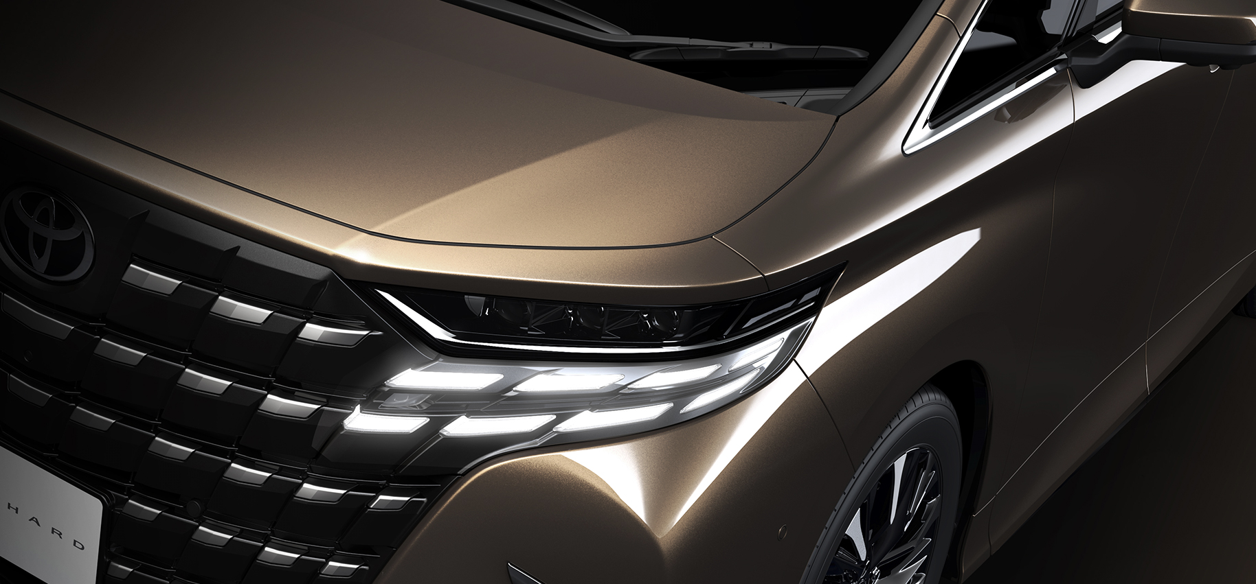 繼續採用家族車系傳統直立式巨型霸氣鬼面罩,設計盡顯優雅貴氣格紋;搭配車系專屬的LED Bi-Beam頭燈、LED循序式指揮燈及高規格組合式尾燈,創建劃時代豪華MPV。